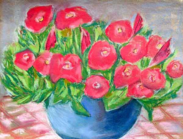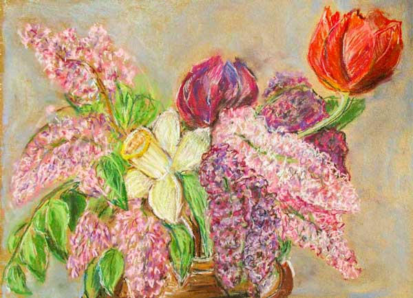 Das Malen mit Pastellkreiden gibt mir die Möglichkeit, schnell und ohne viel Vorbereitung z.B. gleich am Morgen den Tag mit einem Bild zu beginnen. Arrangements mit Blumen verschiedener Jahreszeiten, die sich verändern mit der Zeit, im wechselnden Licht - unwiderstehliche Herausforderung und Freude.